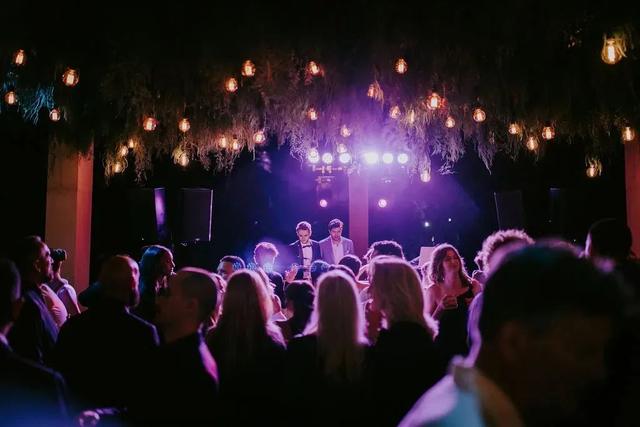 儀式結束後便是After Party環節,新郎新娘在派對上相擁甜蜜共舞。