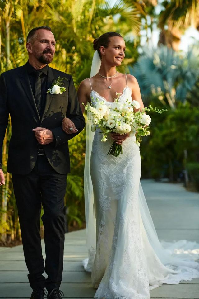 婚禮上,Jojo挽著自己的父親