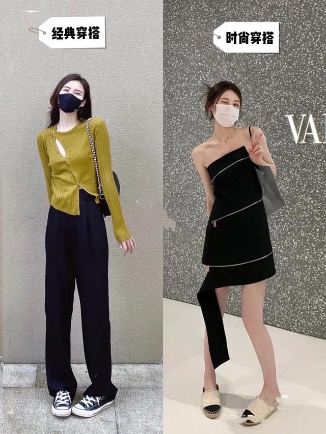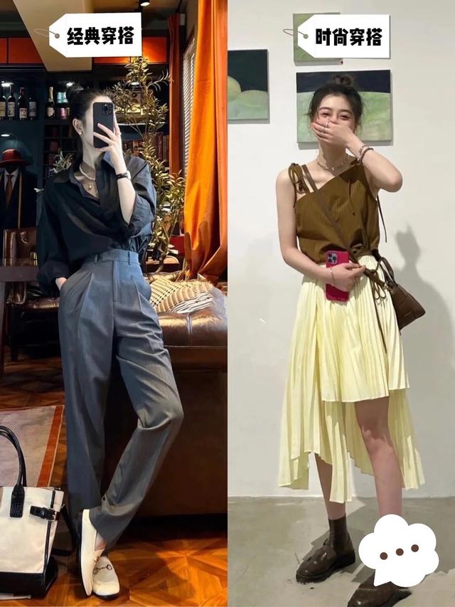 利落的襯衫,配上高腰的西褲,是一種經典風格的穿搭,低調簡約又大氣。而露肩的背心,配上前短後長的半身裙,則是時髦又吸睛的風格,特別的抓人眼球。