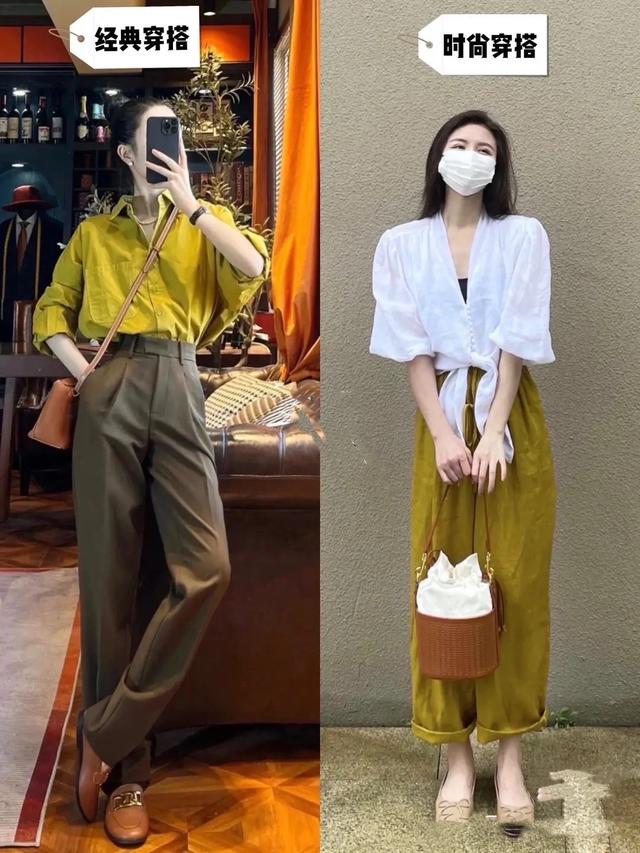 襯衫與西褲的穿搭,簡約幹練的同時,也是非常帥氣的。例如薑黃色的襯衫配上棕色系的西褲,是一種經典又大氣的穿搭。