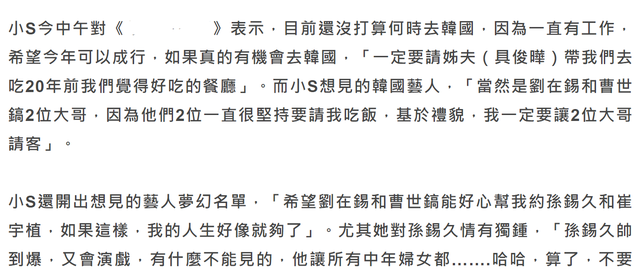 不僅如此,面對這一波熱度,小S顯然不打算輕易放過,還接受採訪大聊之後要去韓國的話,想要追星誰誰誰……