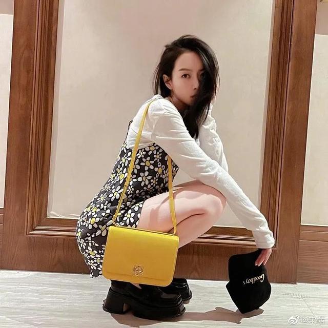 當你在為新款Amazona手袋瘋狂心動的時候,宋茜又忍不住送上猛料!明晃晃的黃色包袋上鑲嵌著LOEWE的老花logo,光滑牛皮和利落線條組合出簡潔包身,完美覆蓋各種場合,這就是即將在2021年7月上市的LOEWE新款GOYA包!
