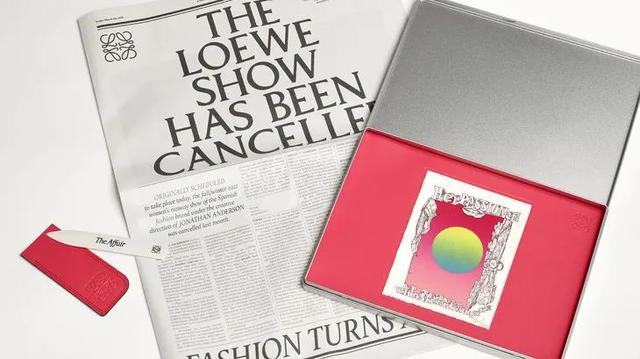 大秀開始之前,嘉賓都收到了一個時間膠囊錫紙盒,裡面有一份最新報紙,上面印著關於LOEWE大秀的最新消息:LOEWE大秀取消。