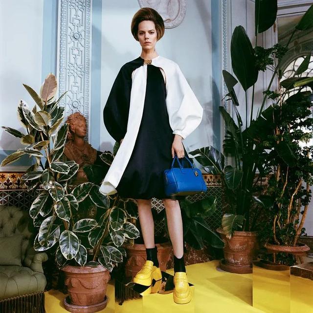 本次大秀大量使用立體剪裁,誇張的泡泡袖是Jonathan Anderson相當滿意的廓形作品。放大的泡泡袖下落至肩膀以下的位置,圓潤的弧度戲劇張力十足,呈現出更為生動的視覺效果。