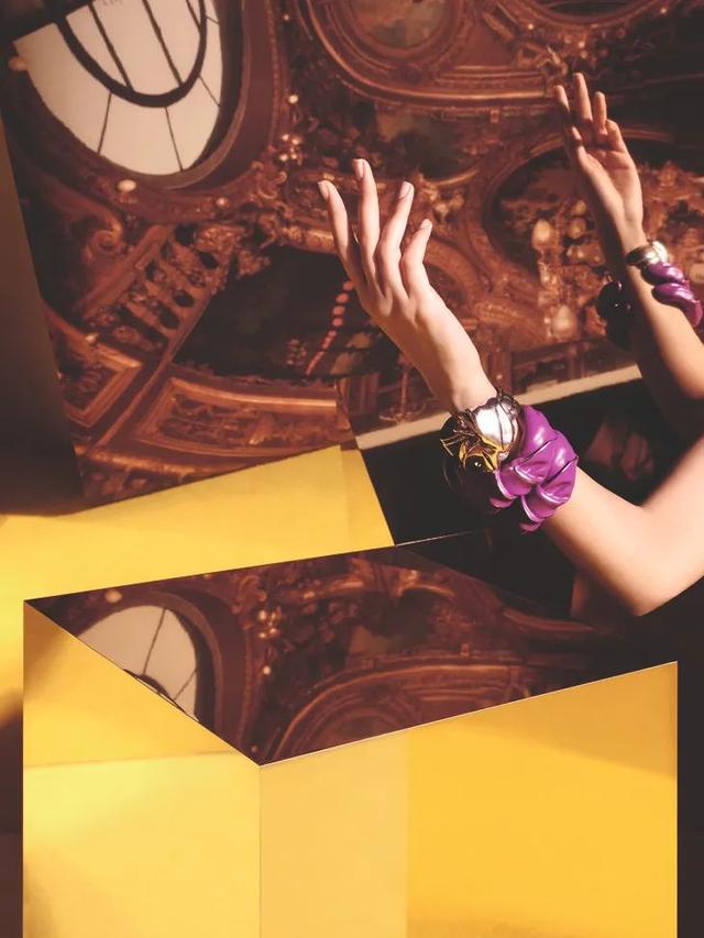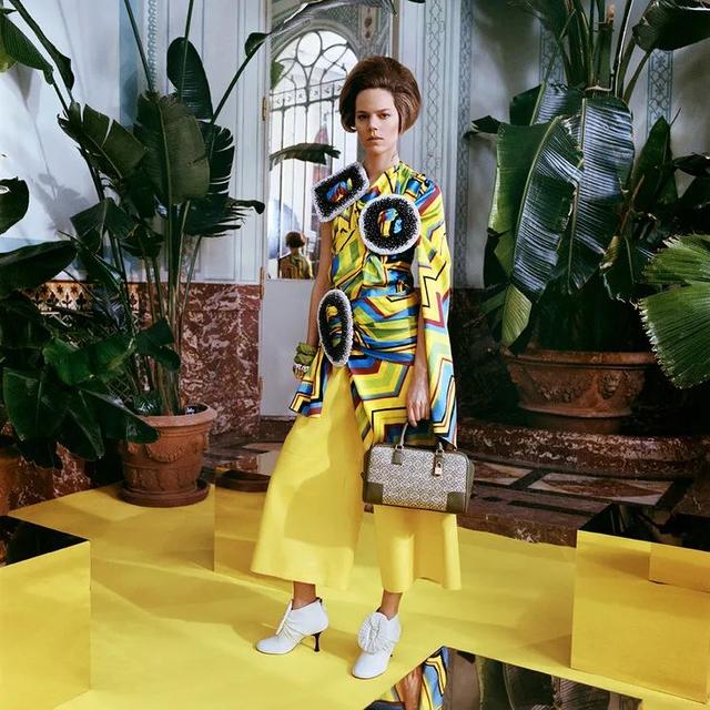 如顏料般鮮亮迸發的色彩在被大膽組合運用為各種圖形元素,並映印在剪裁立體、衣袂翩躚的服飾上,仿佛即將滿溢而出。這種迷幻色彩在後疫情時代傳遞著一個觀念:純粹快樂。