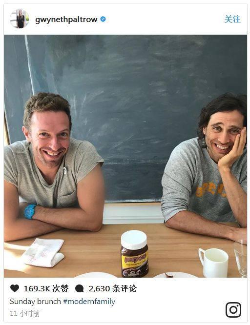 格溫妮斯在網上po了一張前夫馬丁和現任未婚夫一同在家吃飯共度感恩節的照片。