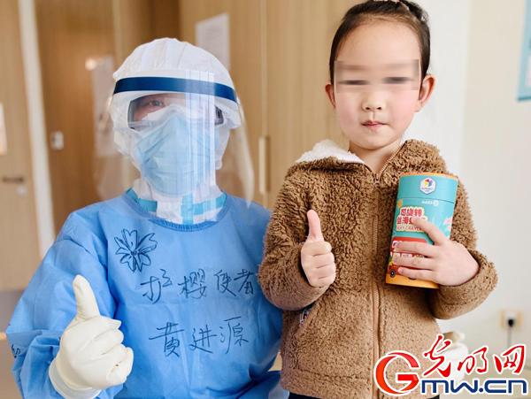 受學形象設計的媽媽影響,樂樂從小就是一個愛美的女孩,但在醫院住院期間,樂樂最初看到穿防護服的護士姐姐還十分陌生害怕,會往媽媽身後躲避。看到樂樂表現出來的恐懼,黃進源與護士們也給了她更多的關心和關愛,時常到病房陪樂樂聊天,給樂樂送零食。特別是聽說樂樂喜歡畫畫,她還專門托武漢的朋友幫忙,經多方找尋才買到一盒彩色蠟筆,專門給樂樂送到隔離病區。