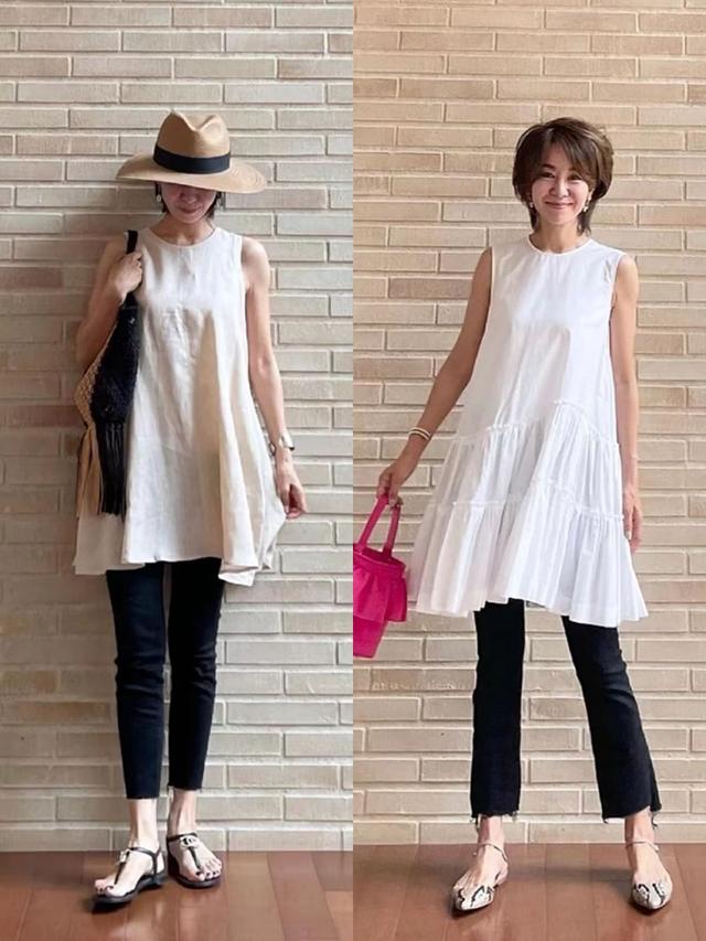 例如這裡用無袖衫搭配小黑褲,主要借助無袖衫的版型與九分設計增添輕盈感,顯得簡約而時尚。