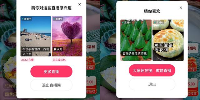 在抖快的推薦頁直播會混入短視訊內容中,充分發揮短視訊平臺的優勢,以豐富的短視訊內容切入直播帶貨,把購物場景融入進了內容消費場景,能夠絲滑地將短視訊內容消費者轉化為直播購物者。