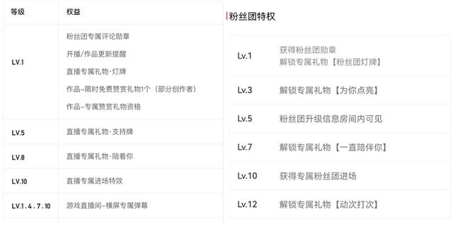 下面將從粉絲團門檻、粉絲團等級入口(如何升級)、粉絲團等級出口(升級後可以獲得什麼)三方面展開對比。