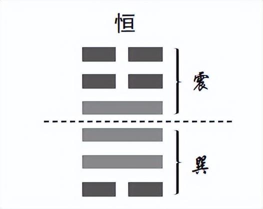 恒卦巽下震上,巽代表長女,震代表長男,象徵男性剛強,不宜久居婦下;女性柔順,樂於追隨丈夫。