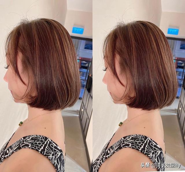 頭髮多的女生選擇波波頭的時候,可以保留直發的效果,髮尾帶一點點內扣的造型,特別的瘦臉,搭配棕色的染髮,有光澤還有質感,不誇張卻美得很高級。