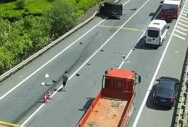 顧不上多想,李周龍趕快下車,從隧道入口處拿了兩個警示錐桶在麵包車後方設置警戒區域,提醒過往駕駛員注意避讓,之後跑步上前查看麵包車上人員情況。