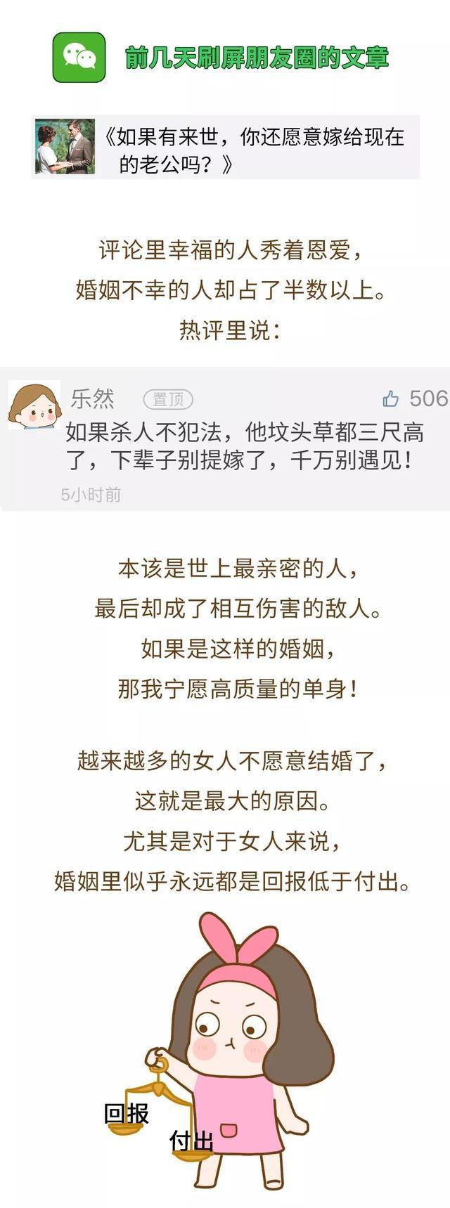 現在的年輕人相比以前可以說思想開放了很多,現實生活中也有很多悲慘的婚後生活,在網路上流傳,很多人也有很多在經歷現在生活的坎坷之後,選擇了離婚,他們都認為自己並不需要結婚,因為結婚後有太多不幸的生活,例如有些家庭要求女生必須要在家裡當家庭主婦,為男人生孩子,而且當向家人要錢時還被指責亂花錢,只能保持最低的生活水準,並且當男人外面遇到一些年輕好看的女生時,就會嫌棄自己家裡的一直在為他操持家務照顧孩子的女生是個黃臉婆,大大增加了出軌的機率。