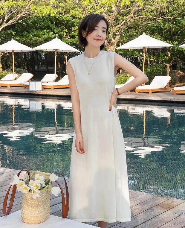 人到中年以後,可不能輕易服老了,想要展現出年輕感,還顯嫩,那麼就要在穿搭上運用起一些配飾,例如帽子、項鏈、包包等等。從這位博主示范的穿搭就知道,配飾是提升造型精緻和時尚的關鍵。淺色短袖襯衫連衣裙,原本就是很簡約的款式,但好在佩戴起一頂草帽,氣氛感瞬間就打造出來了。