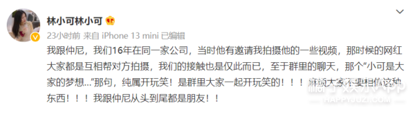今天早上,仲尼在微博回應,