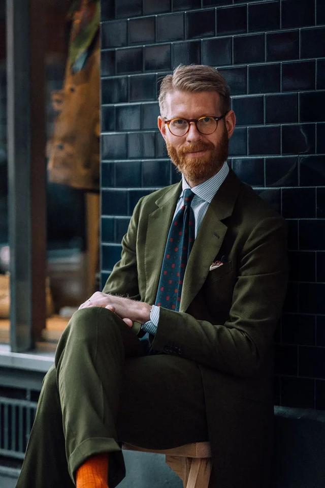 當軍綠色運用到西裝上時,則更顯高級,嚴肅的正裝與硬朗的顏色相結合,削弱了西服的一本正經,為整體著重增添了更多時尚色彩。