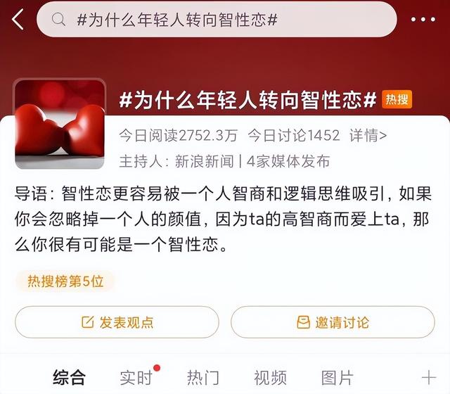 熱搜話題是:為什麼年輕人轉向智性戀?