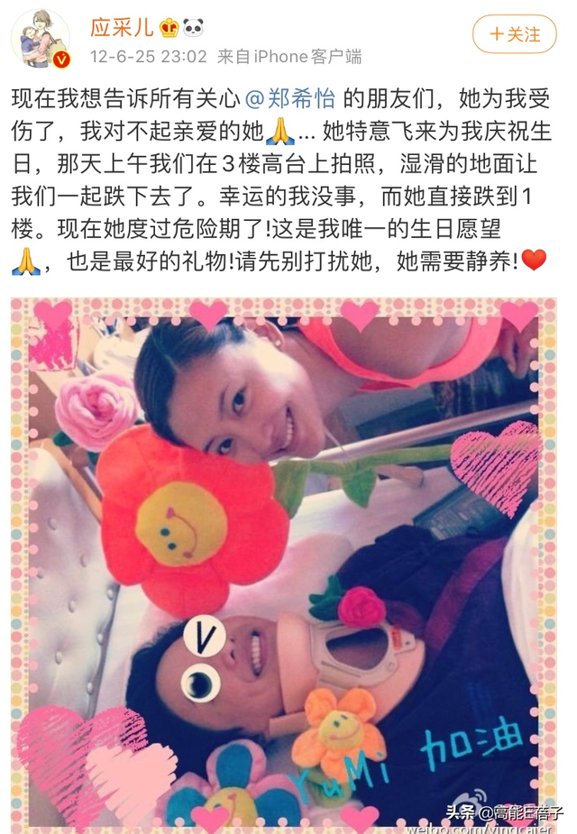 那年,鄭希怡應邀出席好姐妹應采兒的生日聚會,沒承想兩人拍照時從三樓高臺上跌落,應采兒並無大礙,而鄭希怡則摔成重傷。