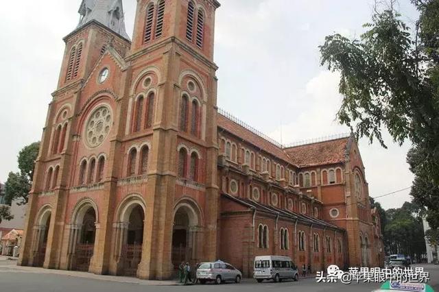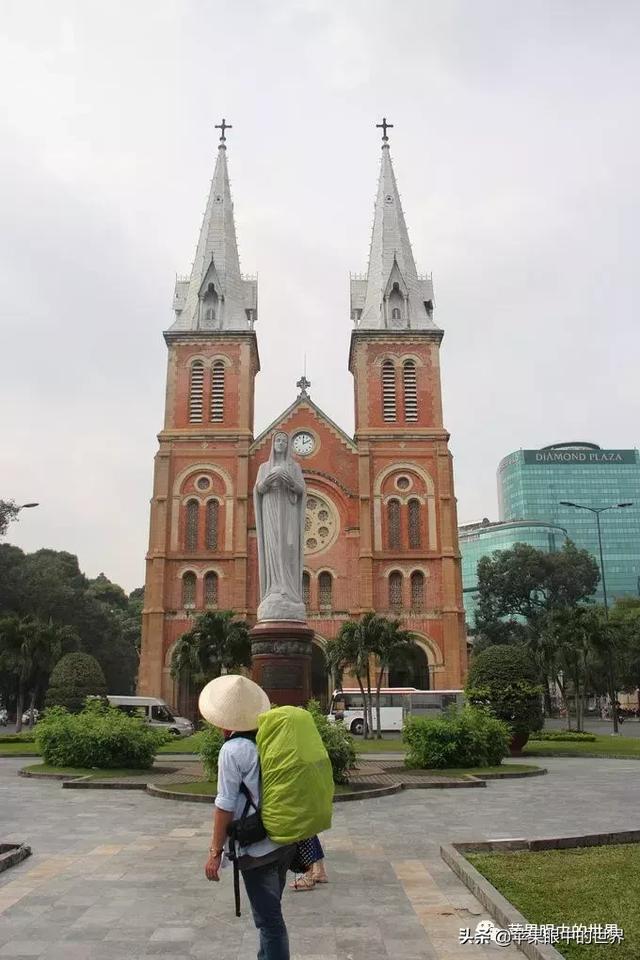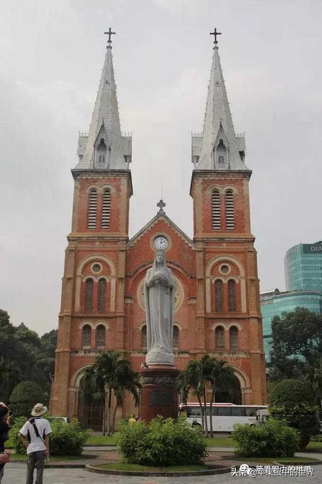 而第二個則是與郵局相鄰的王公聖母教堂,她是天主教胡志明市總教區的主教堂,哥特式建築,兩座40米高的鐘樓是仿造巴黎聖母院設計的,其原材料都來自法國馬賽,一百多年,依然保持著鮮艷的紅色。教堂前矗立著聖母瑪利亞的雕像。無數人來到這裡合影,祈禱。