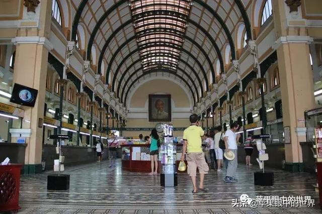在西貢的日子裡,沒有去太多的景點。但有兩個不可以錯過的地方。第一個就是中央郵政局。中央郵局是一棟雄偉的法國殖民地建築,內部裝飾華麗,圓頂具有古典氣息,胡志明的像掛在大廳盡頭的牆壁上,俯瞰著來到這裡的每一個人。