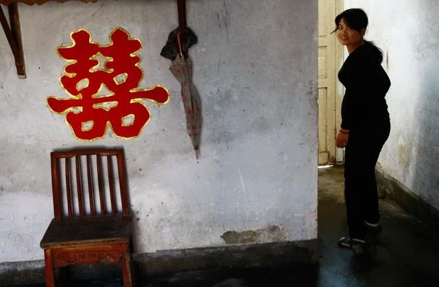 結婚三年了,兩人的兒女都快有兩歲了。但房子的牆壁上還貼著大紅色的喜事,十分醒目。牆上的對聯是當時結婚時貼上的。