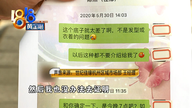 【#花六萬多相親不滿意# 「世紀佳緣」說感情很奇妙】去年11月,夏女士花68800塊錢在杭州世紀佳緣辦了會員,她說門店給她介紹了十多個相親對象,有人#相親時說跟前妻關係很好#,有人不談感情隻讓她買基金,還有人嫌她城市氣息太重,不夠田園風,她感覺很心累。