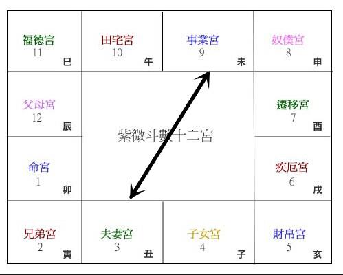 「夫妻宮」和「官祿宮」是一對陰陽,是矛盾的,也是統一的,是相互克制的,也是相互依存、相互生助的。