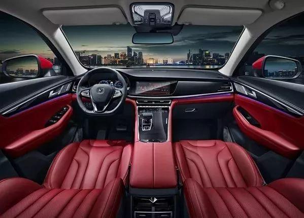 它延續了代表長安家族化概念車「禦嶽」 前臉特征,前格柵猶如「驚鴻之翼」,獨特的溜背式的尾部造型設計,線條流暢,型面張力盡顯。內飾採用了黑與紅的撞色搭配,感覺頗高貴典雅。