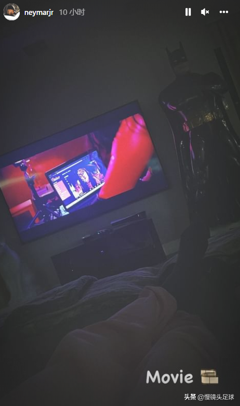 另外一張照片,內馬爾曬出了自己和女友在臥室看電影的畫面,雖然沒有露臉,但是他曬出了穿著粉色睡衣的長腿,自然是比安卡迪。