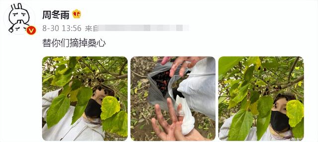 而這似乎也不是周冬雨第一次違反規定了,8月30日,周冬雨在社交平臺曬出了一組摘桑葚的照片。