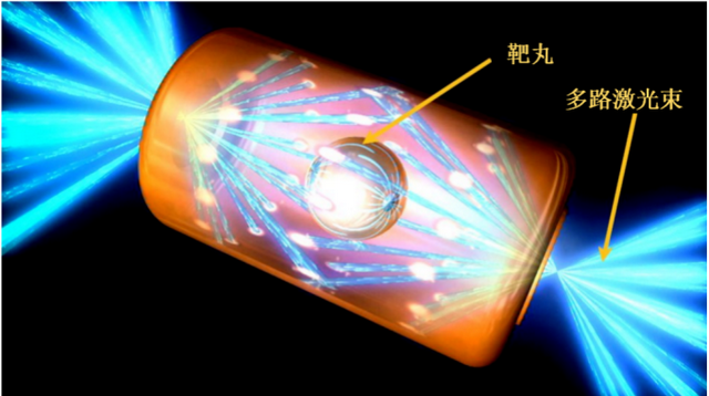 所謂激光慣性約束,指的是不對聚變燃料進行外力(如磁力)約束。利用高能激光去轟擊燃料來產生高溫高壓環境,靜止的燃料由於慣性來不及散開,處在這種極端環境下,聚變反應由此發生。