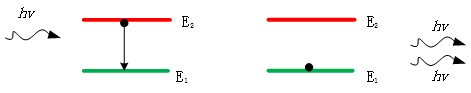 如果他在C扔球過來前就把B的球扔出去,並回到了基態,這個過程就叫做自發輻射。