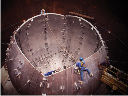 目前世界上最大的激光聚變裝置是美國的國家點火裝置(NIF),裝置的核心是一個直徑達10米,重13噸的鋼球靶室。燃料靶丸被放在靶室的中央,等待功率高達5千億千瓦(5 *1014 W)的激光的轟擊。