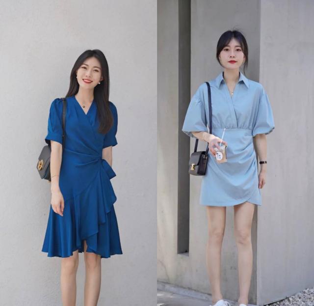 這兩條藍色連衣裙,具備色調方面的不同,且藍色更容易釋放出一種純粹的美感,寶藍色會顯得狀態成熟一些。
