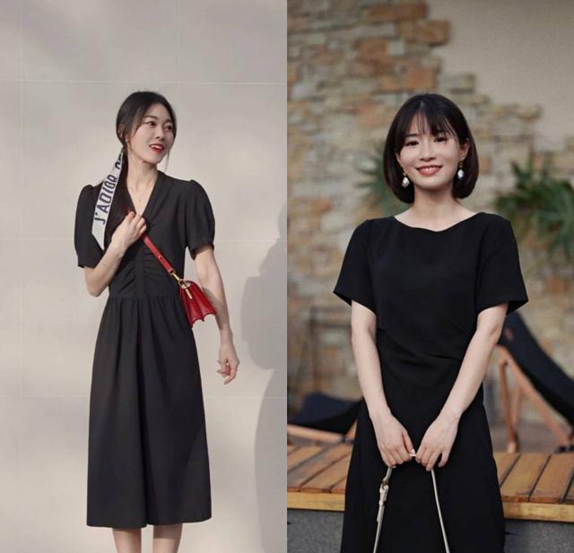 黑色連衣裙可以加入沉穩的風采,也可以讓女性的很多身材瑕疵得到明顯的弱化和修飾。運用大紅色的包包進行點綴,可以豐富色系。