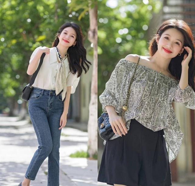 不妨選用帶有泡泡袖設計的白色襯衫,搭配藍色牛仔褲,也是一種擁有顯著清新氣氛的造型,褲子的寬度選擇要跟腿型掛鉤。