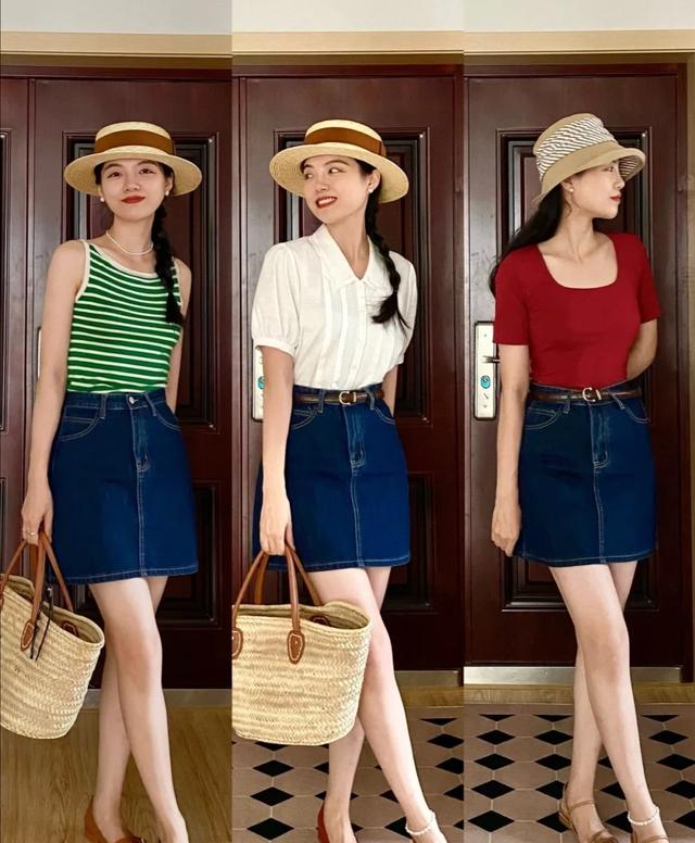 牛仔小短裙,它就會讓人們的視覺重心轉移到裸露出來的腿型之上,同時通過配合短款上衣等一些單品,塑造高腰線,會顯得腿型更修長。
