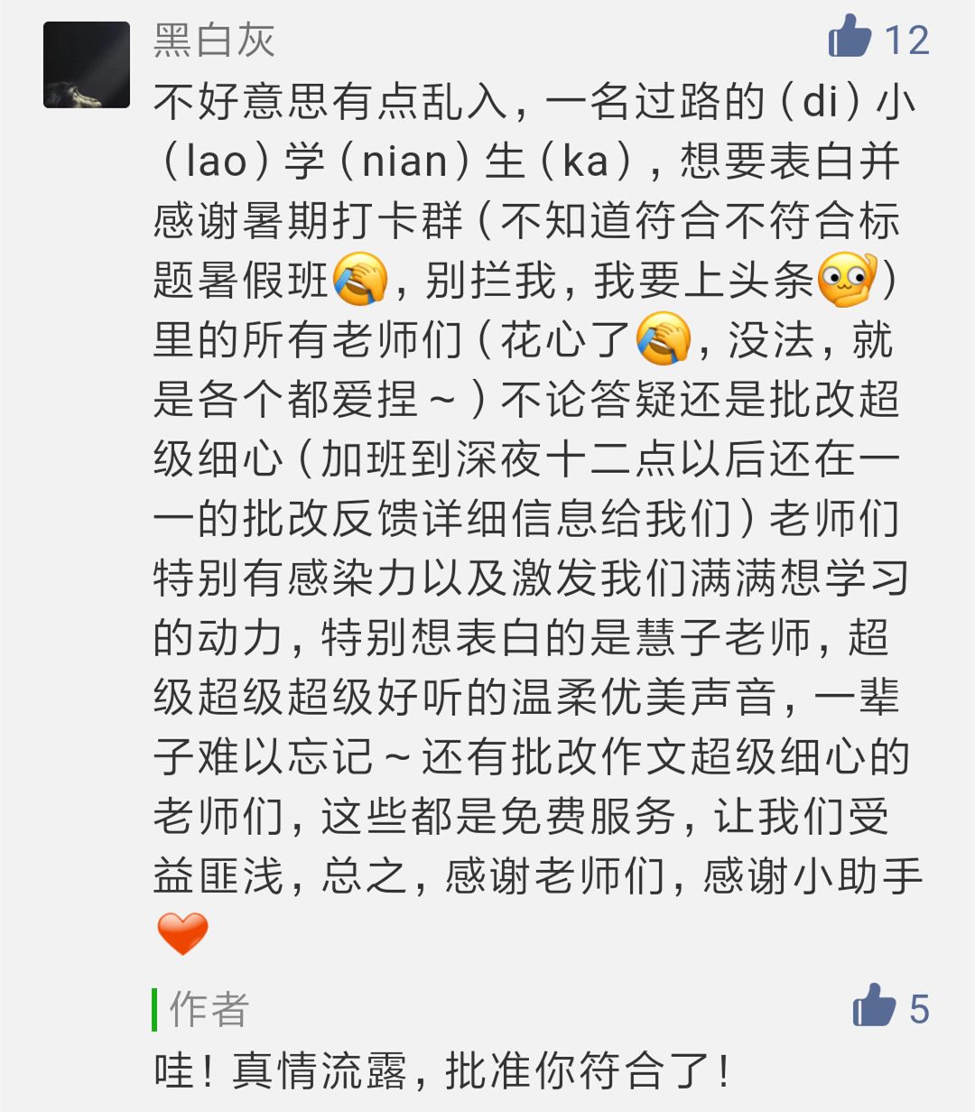 前段時間,小新針對暑假班學生,征集留言表白老師,收獲了一批「真愛感言」!