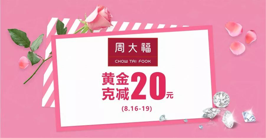 8.16-8.19周大福黃金減20元/克,鑲嵌類9折
