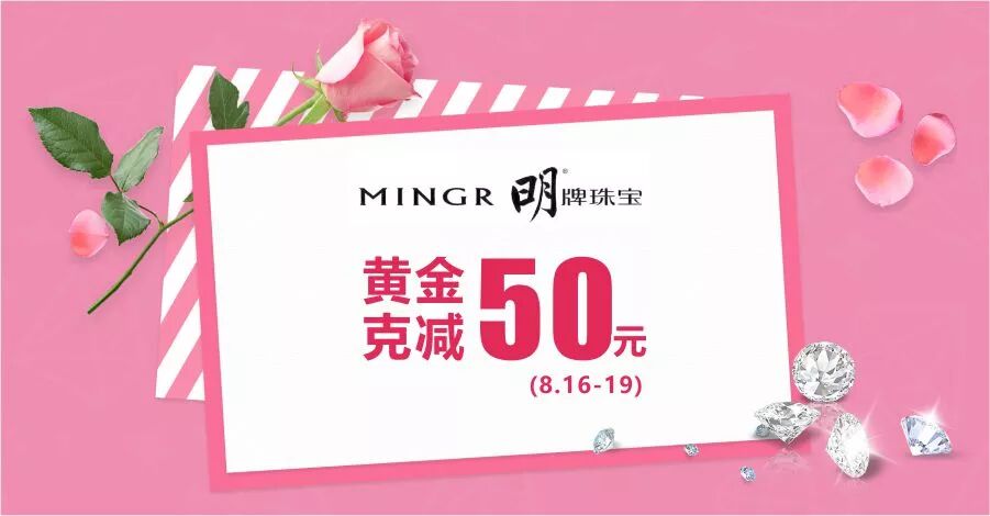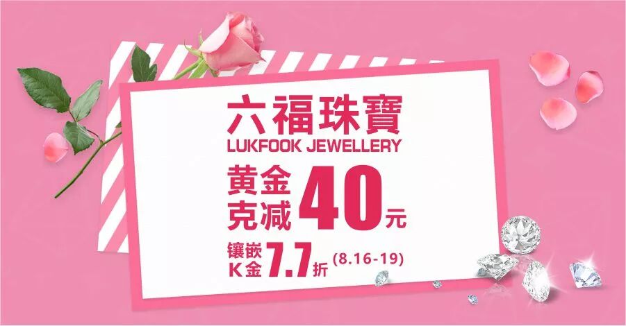 8.16-8.19六福黃金減40元/克,鑲嵌K金7.7折