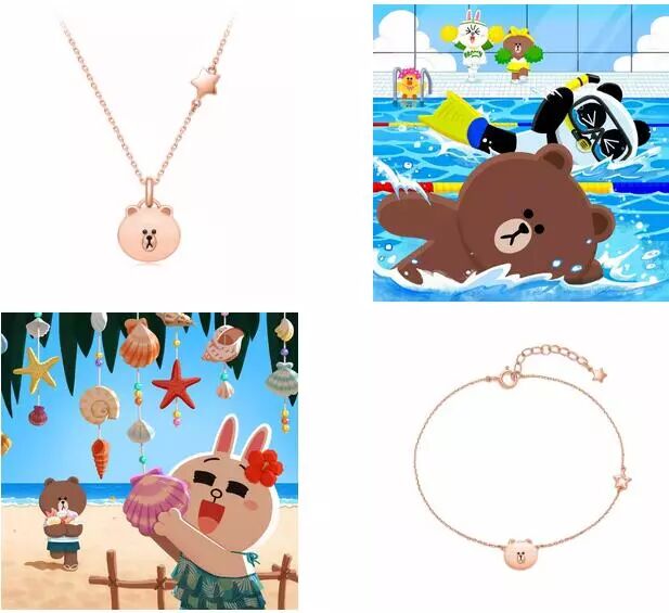 LINE FRIENDS丨周大福K金新品。18k的材質盡顯光澤,正如布朗熊對可妮兔的愛般閃耀,鏈身鏤空的星星與鏈尾的星星相互呼應,極具設計感,絕對是送女友的不二之選,呼應萌動的少女心~