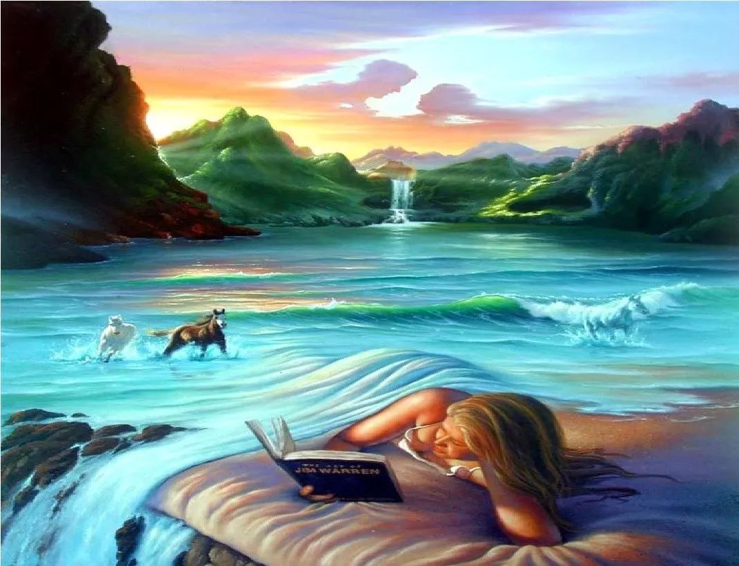 A、遠處的酷似情侶的雲B、奔流不息的河水C、一個讀書的女生D、遠處奔跑的馬