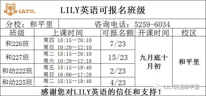 以下是LILY和平里校區近期公開課的安排以及可報名額,想要報名的家長抓緊報名喲!