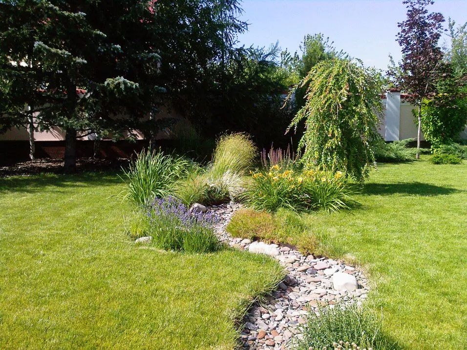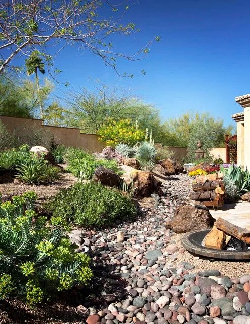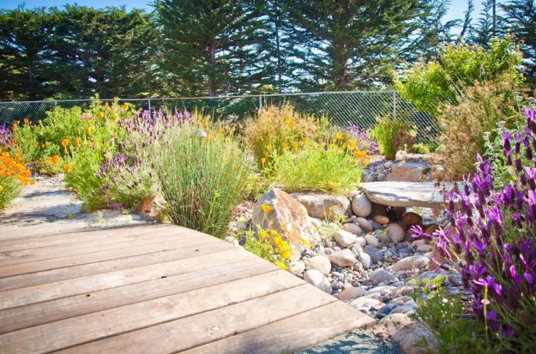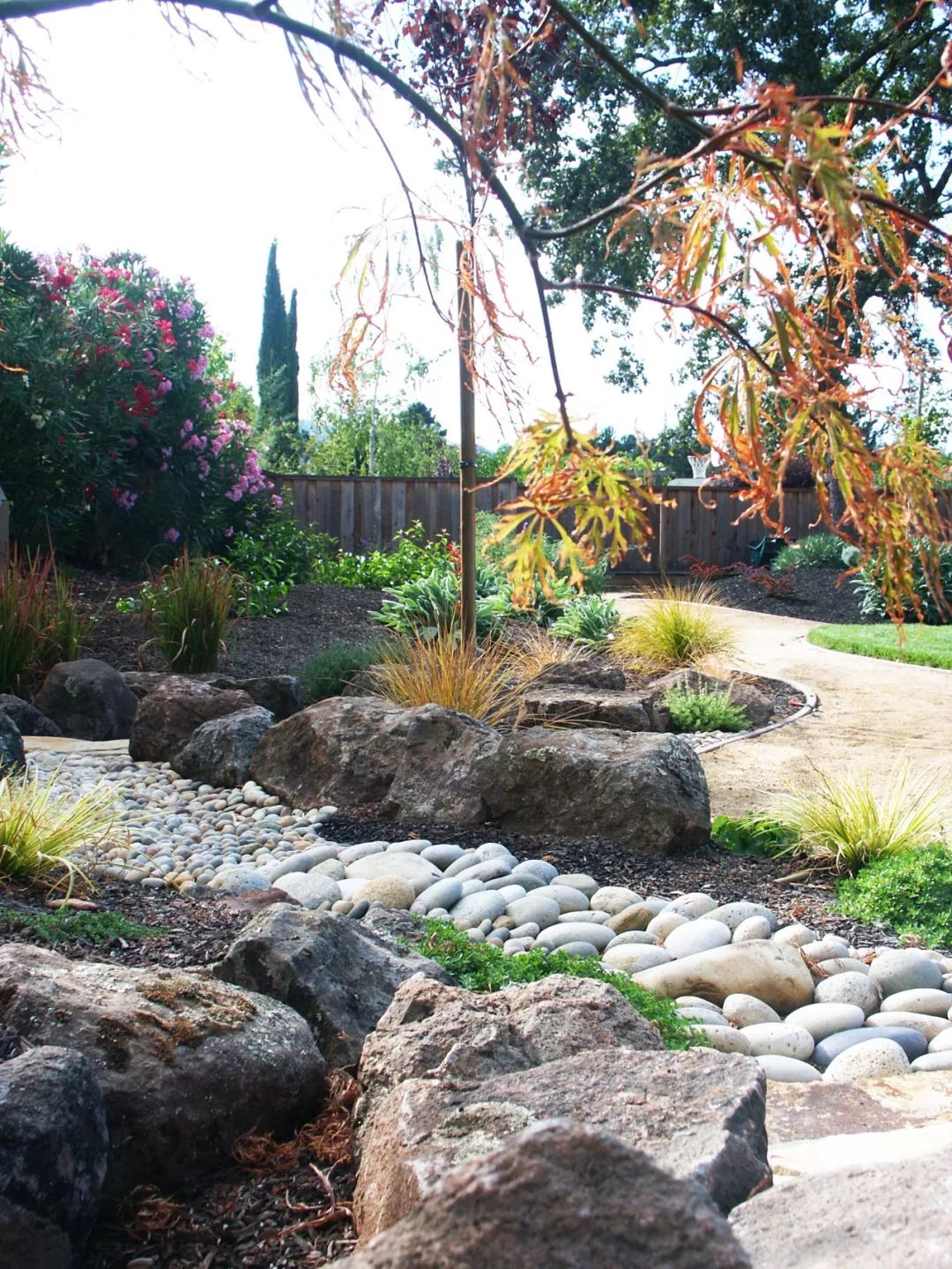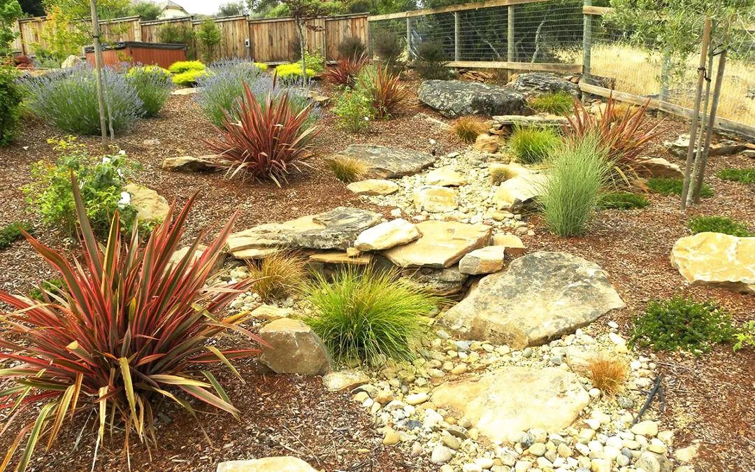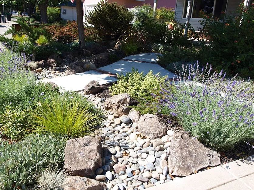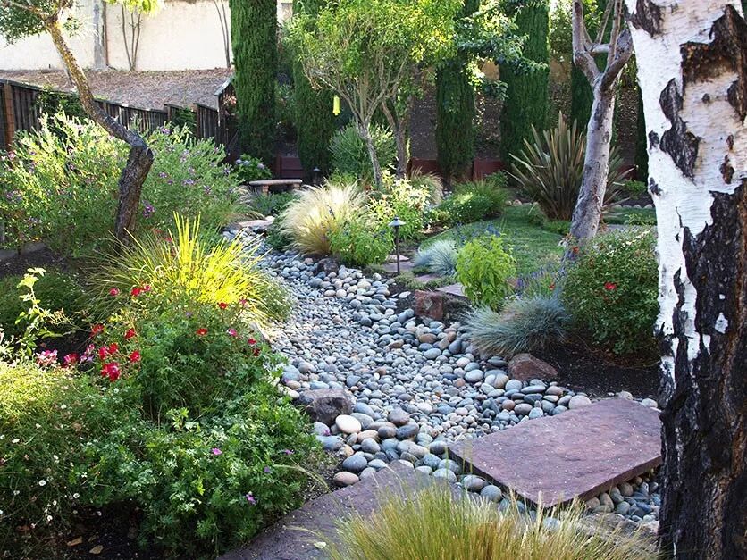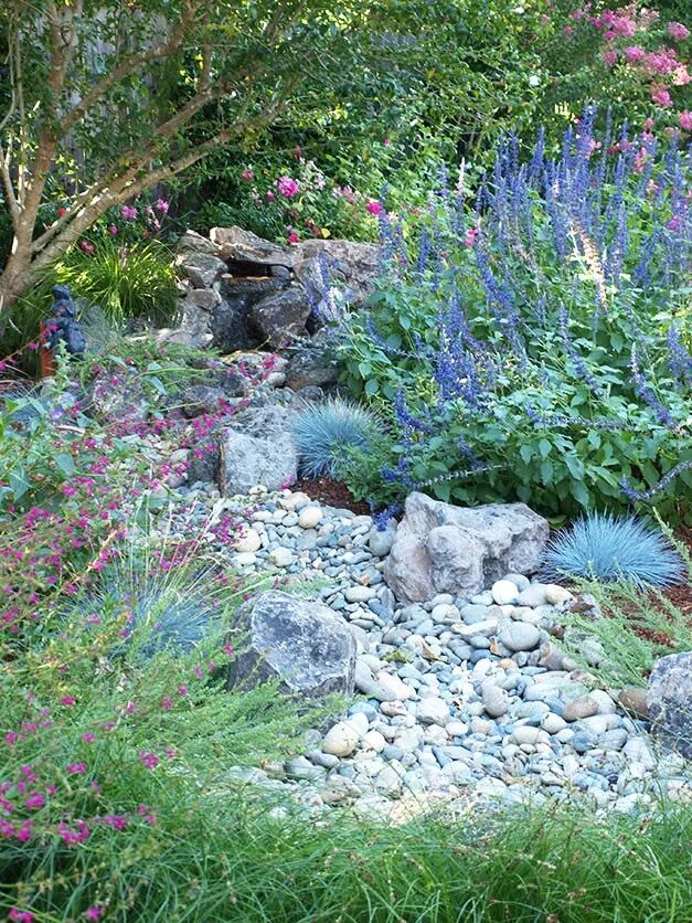 旱溪就是不放水的溪床,人工仿造自然界中幹涸的河床,配合植物的營造在意境上表達出溪水的景觀。