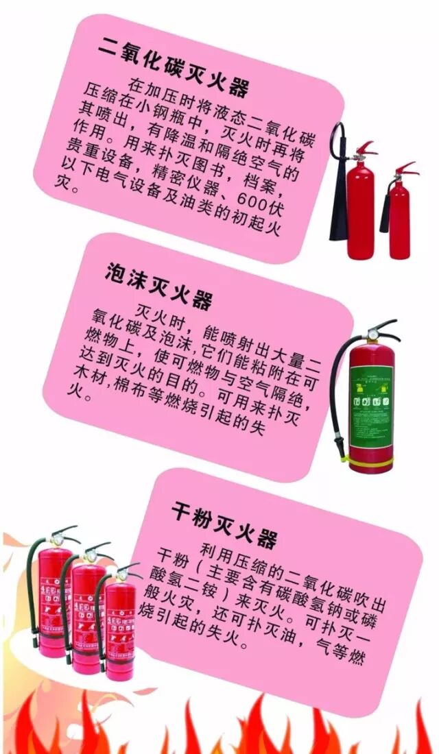幹粉滅火器、泡沫滅火器、二氧化碳滅火器、清水滅火器……