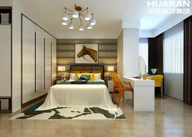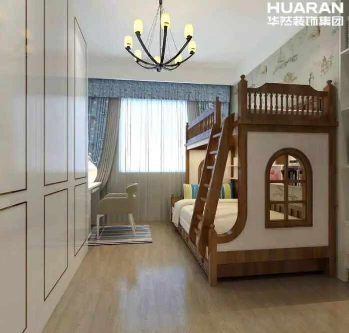 臥室運用白色作為主色調,配合其他比較明快的顏色,整體風格也是簡潔的。顏色搭配得當,讓臥室變得十分溫馨,無論是牆面地面家具等,都是以簡潔為主,追求一個舒適的休息空間。小孩房的高低床設計滿足居住要求的同時體現了空間的趣味性。