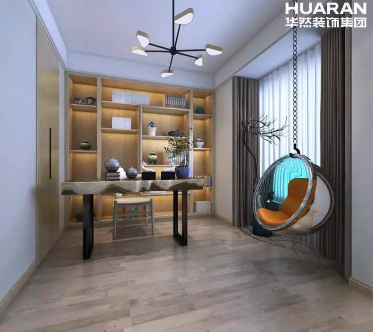 書房將藝術氣息植入現代審美中,淺木疏窗,微風穿堂,在書香滿溢中品味近在咫尺的詩與遠方。臥室在內部規劃出一個獨立衣帽間和一個敞開式小書房,讓主人房的實用功能更加全面。