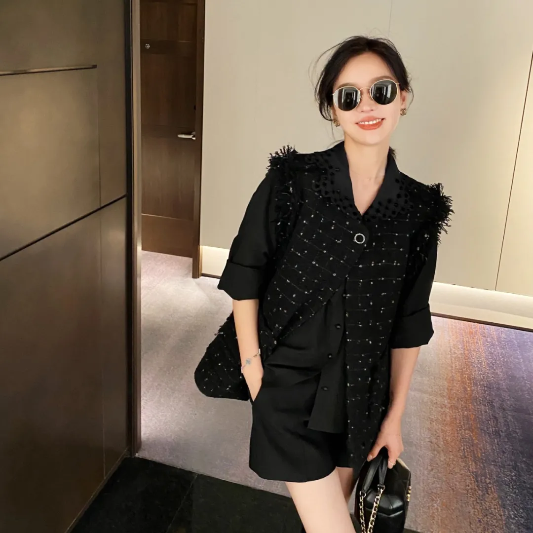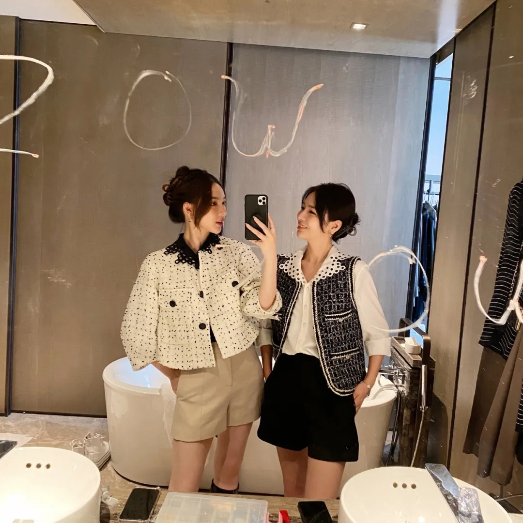 小香風背心,露出性感的鎖骨,俏皮又可愛,九分褲,微微露出腳踝,優雅又時髦,短褲時尚大方,搭配襯衫是職場美人,搭配T恤是日常小可愛,這一套系完全不用心不會搭配的那種哦~