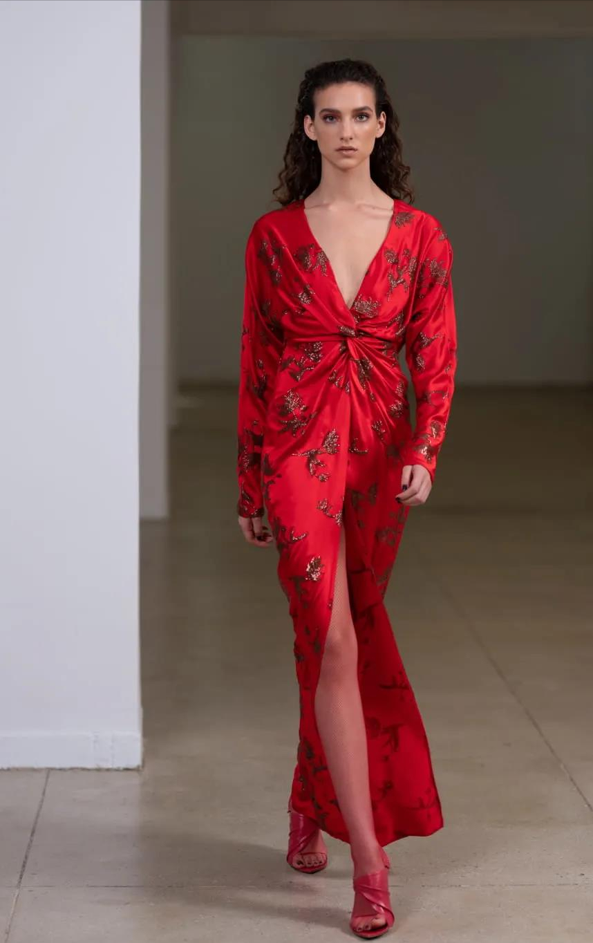 想想看,如此張揚的顏色,肯定需要穿著者強大的氣勢去駕馭,才會相得益彰。要不然,反會被它吞噬,人物消失不見,唯留下那堆氣焰囂張的艷紅。